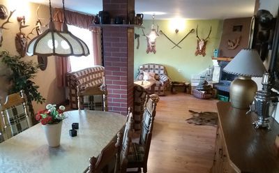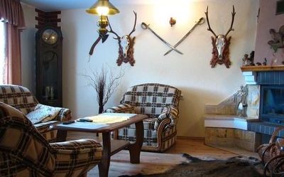 Chata Myśliwska znajduje się tuż przy lesie, w cichej i spokojnej okolicy.